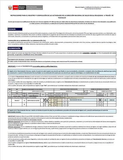 Manual de Registro y Codificación Telesalud - Telemedicina